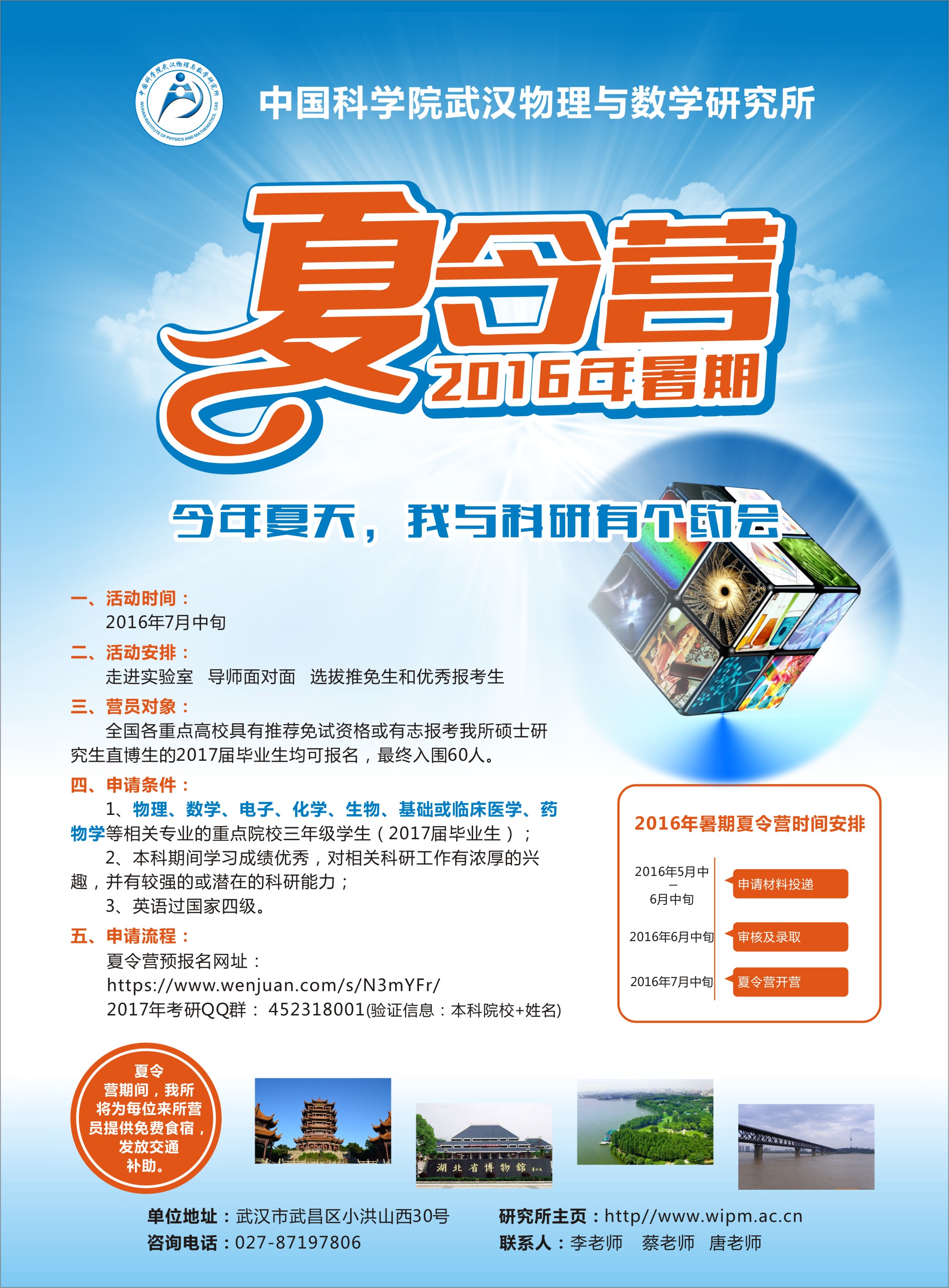 中科院武汉物理与数学研究所2016年大学生夏令营通知