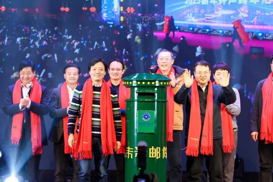 零点之后,校领导启封“未来邮筒”。同学们将“致未来的自己”明信片投递其中,若干年后,学生可以返校到档案馆查询,比对初心。
