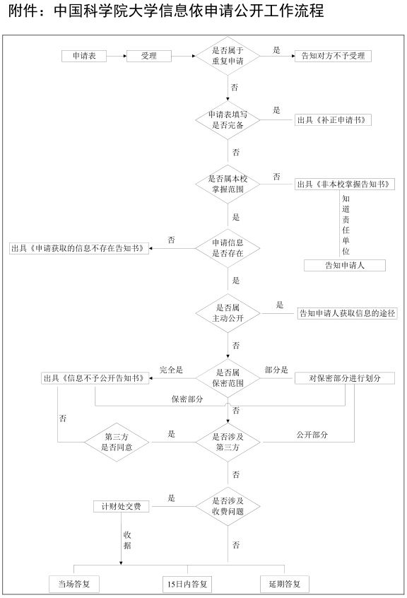 (一)进一步深化公开内容。学校依托校园网、协同工作平台(CP)等载体,推进信息公开,强化监督。学校在招生、培养、就业、人事、科研、国际交流、制度公文等方面的信息公开得到大力加强。通过公布专用邮箱(xxgk@ucas.ziguiwei.com)和专用电话(010-69671027),受理信息公开申请。