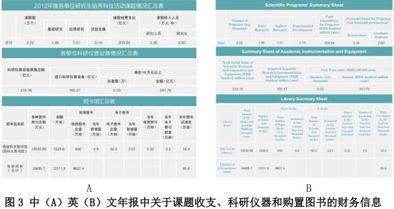 作机制。在中英文网站发布学校中英文年报,年报中涉及科研活动、图书购置和科研仪器设备购置情况等(图 3A、3B)。