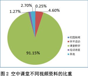 建立健全财务信息公开的工作制度,完善了校长领导、计划财务处组织实施、教代会(工会)组织协同推进、师生员工积极参与、内设监察部门监督检查的财务信息公开内部图2空中课堂不同视频资料的比重工作机制。财务信息做到部分和校内公开,通过向教代会(工会)报告预决算和业务招待费等情况,强化监督检查内部工